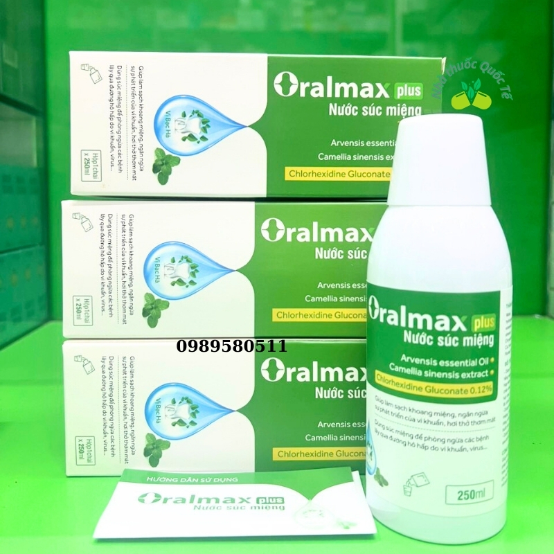 Nước súc miệng Oralmax Plus làm sạch mảng bám, ngừa hôi miệng,chắc răng hơi thở thơm mát(Chai 250ml)