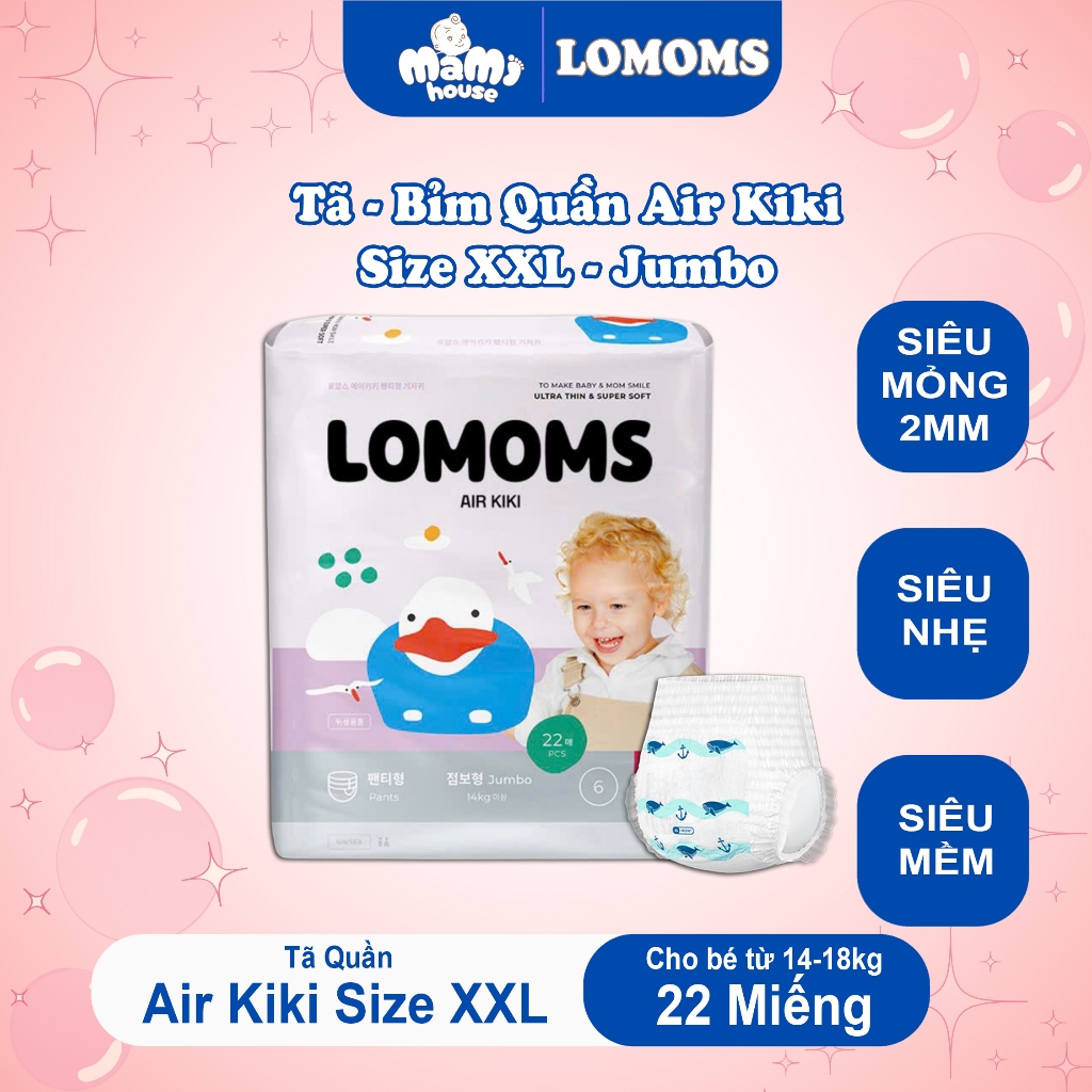 Tã/Bỉm Lomoms Air Kiki Hàn Quốc mềm mỏng, thấm hút tốt, chống tràn hiệu quả đủ size từ 3 đến 25kg