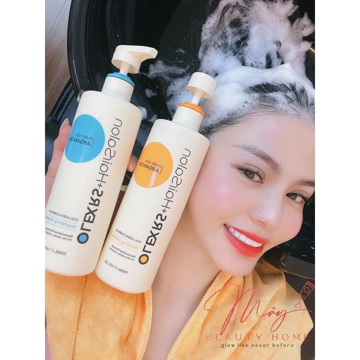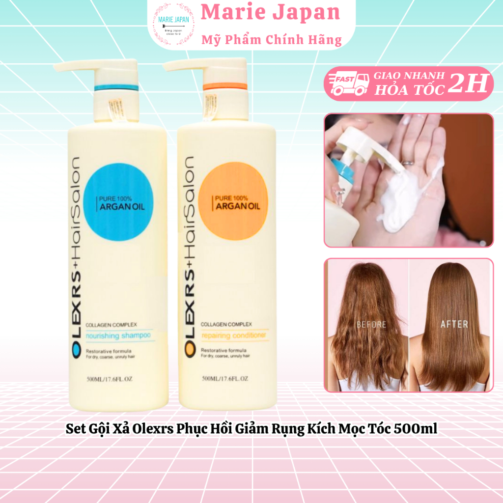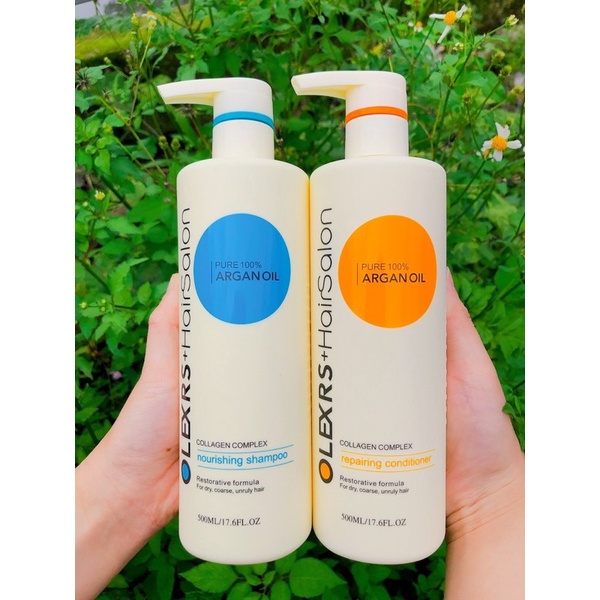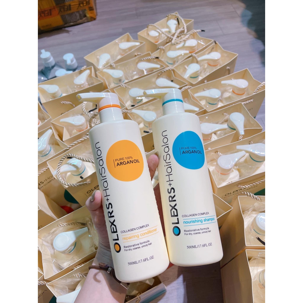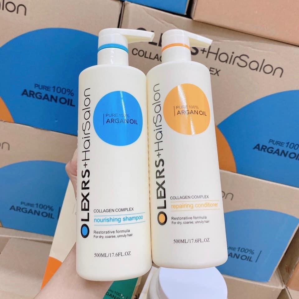 Set Gội xả Olexrs Phục Hồi Giảm Rụng Kích Mọc Tóc Argan Oil Collagen Hair Salon 500ml