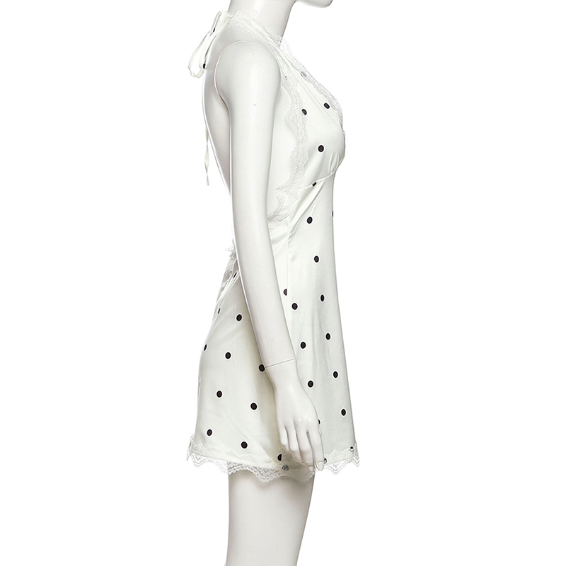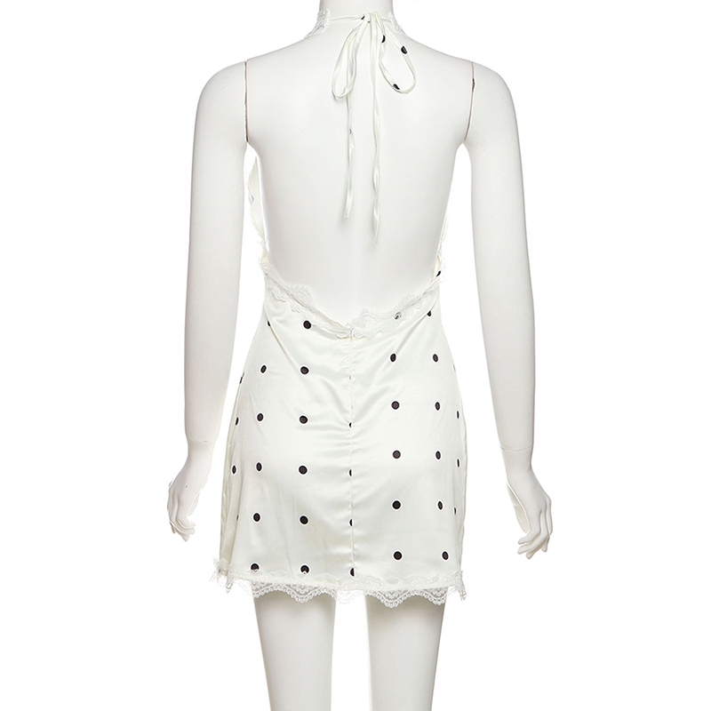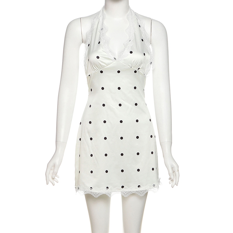 Cutenew Chấm Bi Mini Váy Dây Cổ Chữ V Tắt Tay Gợi Cảm Lưng Skinny Cá Tính Niche Nóng Gà Con Nhìn Mỏng Hơn Thời Trang Đường Phố Phong Cách Nóng Mới