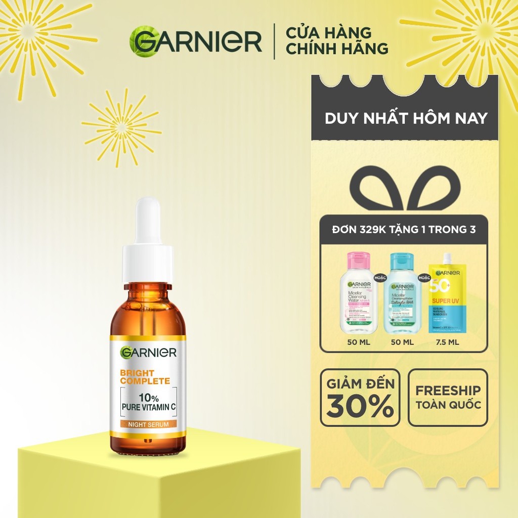 Dưỡng chất ban đêm dưỡng sáng & phục hồi Garnier 10% Vitamin C Nguyên Chất Bright Complete Overnight Serum 30ml