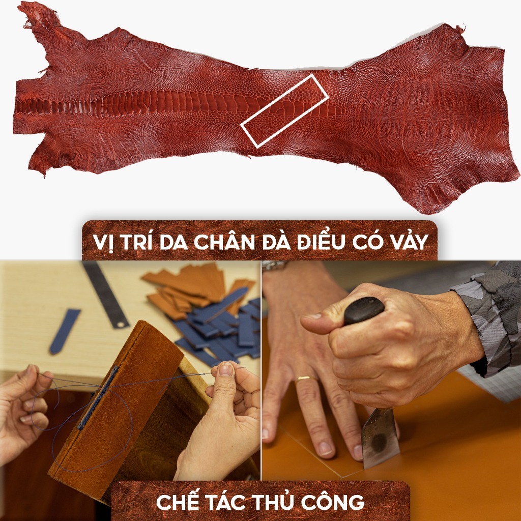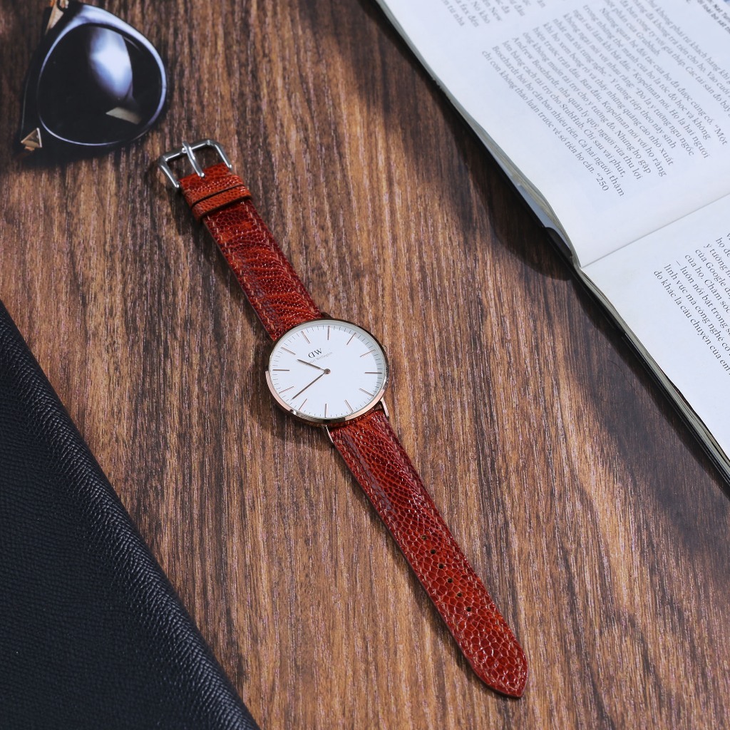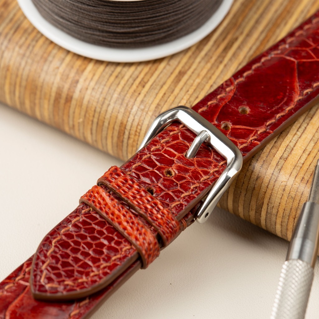 Dây đồng hồ da đà điểu-khâu tay thủ công D104 size 18mm, 20mm, 22mm, 24mm-Bụi Leather