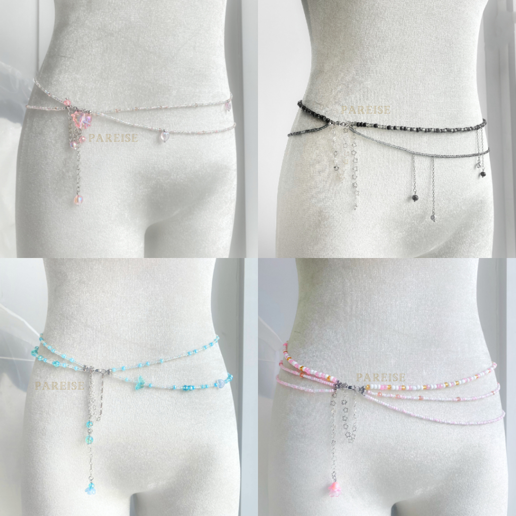 Dây Chuyền Đeo Eo Không Gỉ Pareise Mỗi Mẫu Một Cái Dây Hạt Thuỷ Tinh Thắt Lưng Eo Phụ Kiện