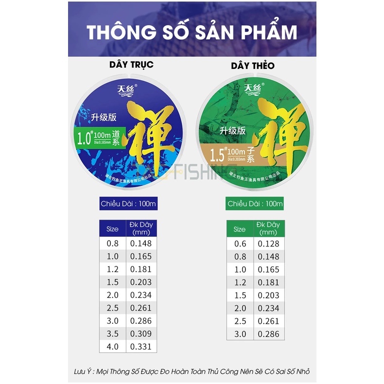 Dây Cước Trục Câu Cá Đơn Đài Vua Câu THIỀN 100m ( Bản Nâng Cấp ) Chất Liệu Cao Cấp