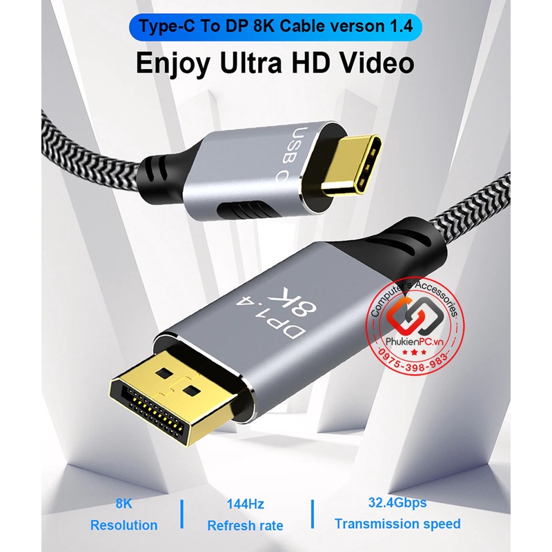 Dây cáp chuyển đổi USB-C Thunderbolt 3/4 to Displayport 1.4 8K60hz 4K144hz 2K165hz 1080P 165hz dài 1M 2M 3M
