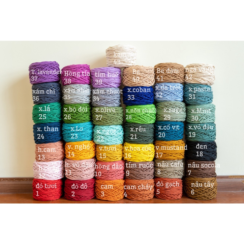 (màu Hot Hit) 500g -Dây thừng đan macrame . sợi 4 xoắn - size 3mm.. FUL COLOR( 47 màu )