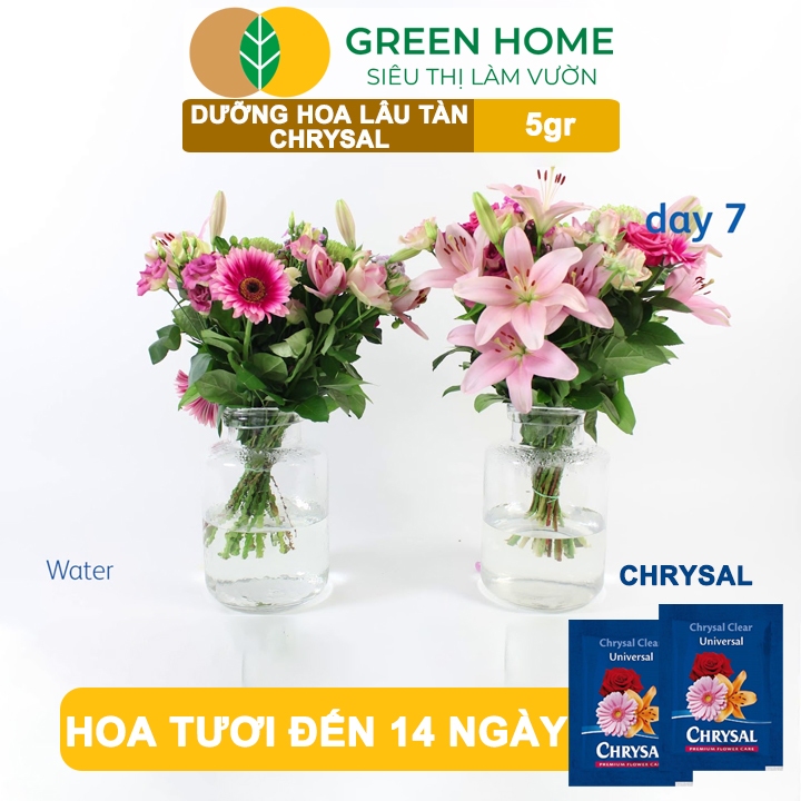 Dưỡng Hoa Lâu Tàn GreenHome, Chrysal, Gói 5gr, Phân Bón Cho Hoa Cắt Cành, Lâu Tàn, Không Bị Hôi Nước