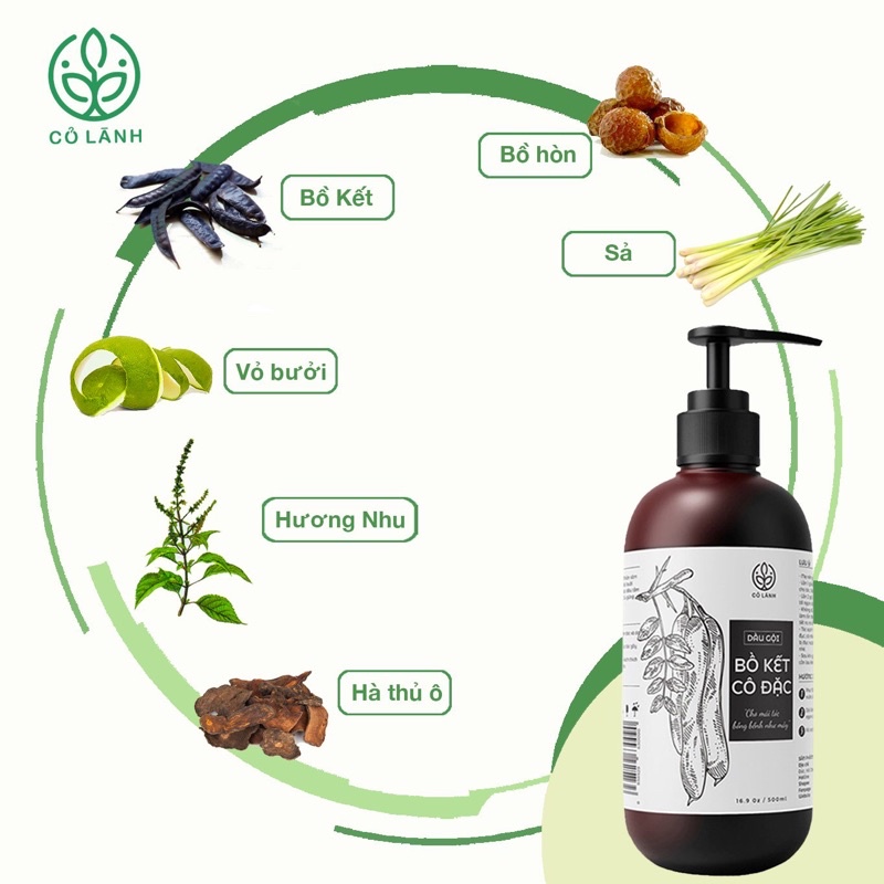 Dầu Gội Bồ Kết Cô Đặc Cỏ Lành 100ml-300ml-500ml Làm Sạch & Giúp Tóc Chắc Khoẻ Bồng Bềnh