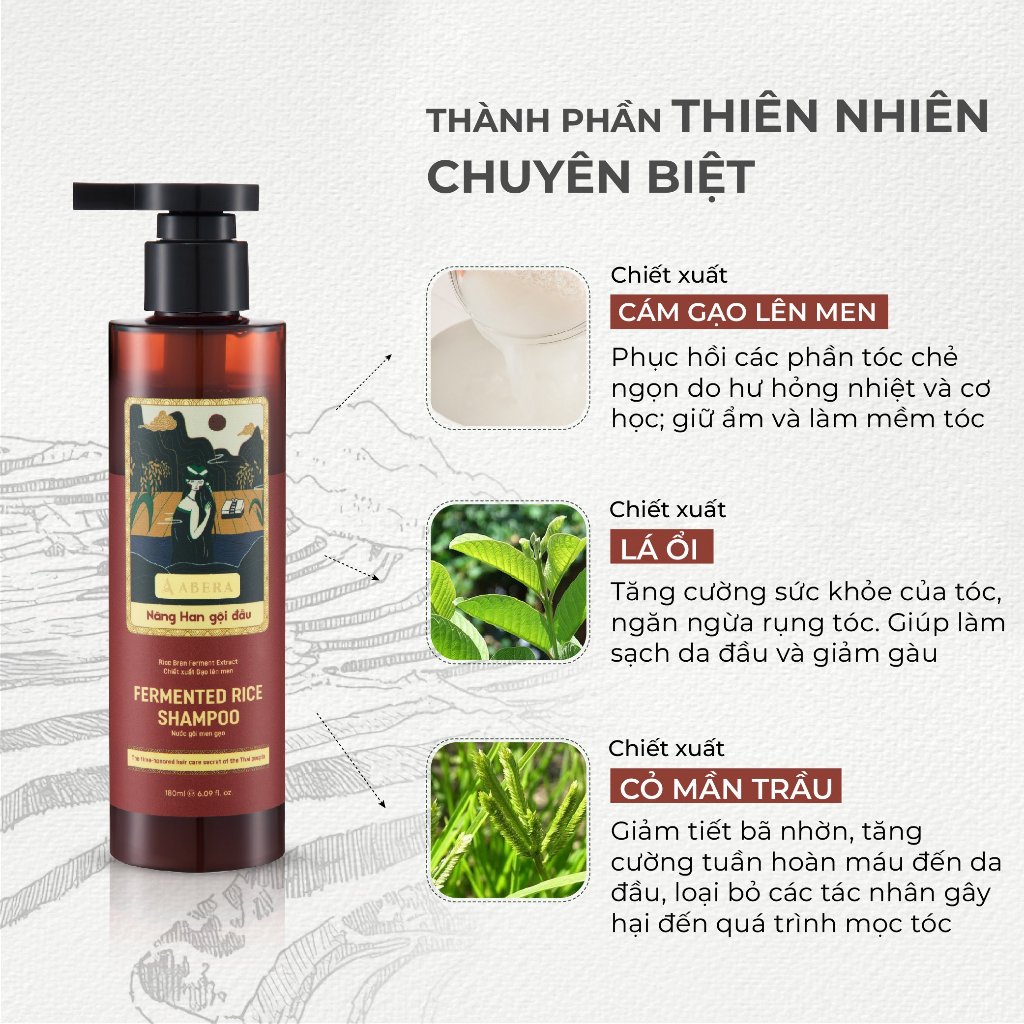 Dầu Gội Dược Liệu Men Gạo ABERA 170ml - Giảm Tóc Bạc Tự Nhiên, Ngăn Ngừa Tóc Gãy Rụng, Sạch Gàu Ngứa