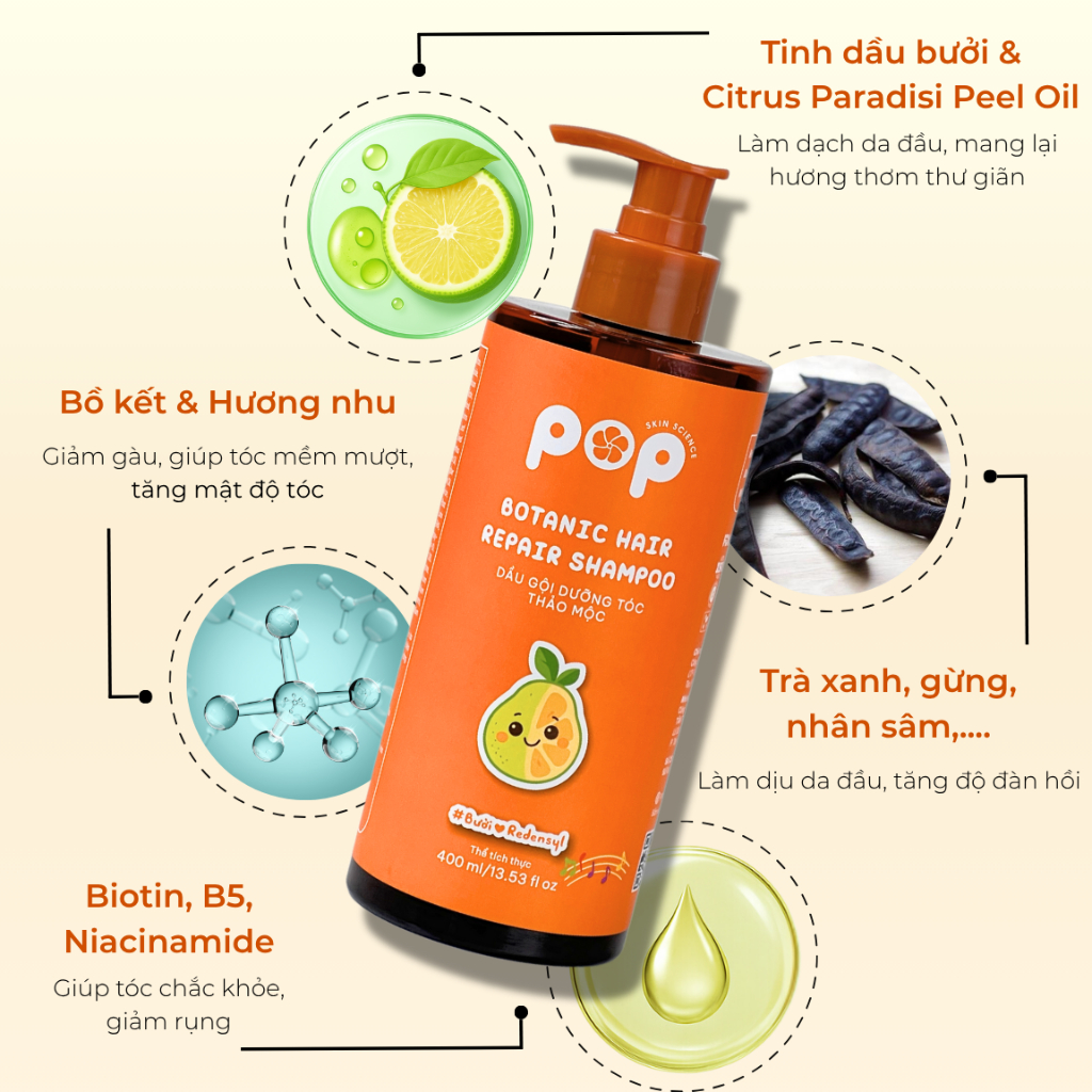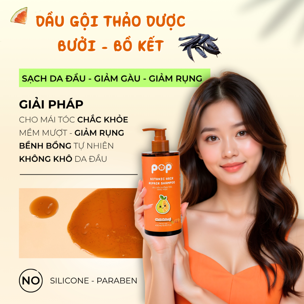 Dầu Gội Thảo Dược Bưởi – Bồ Kết – Làm Sạch Dịu Nhẹ, Nuôi Dưỡng Tóc Chắc Khỏe - 400ml