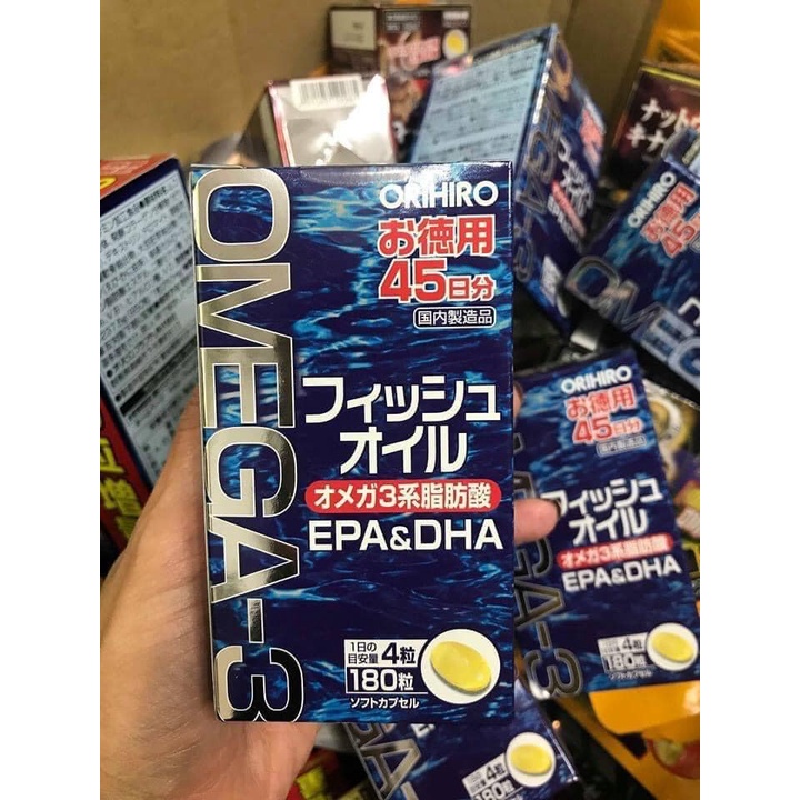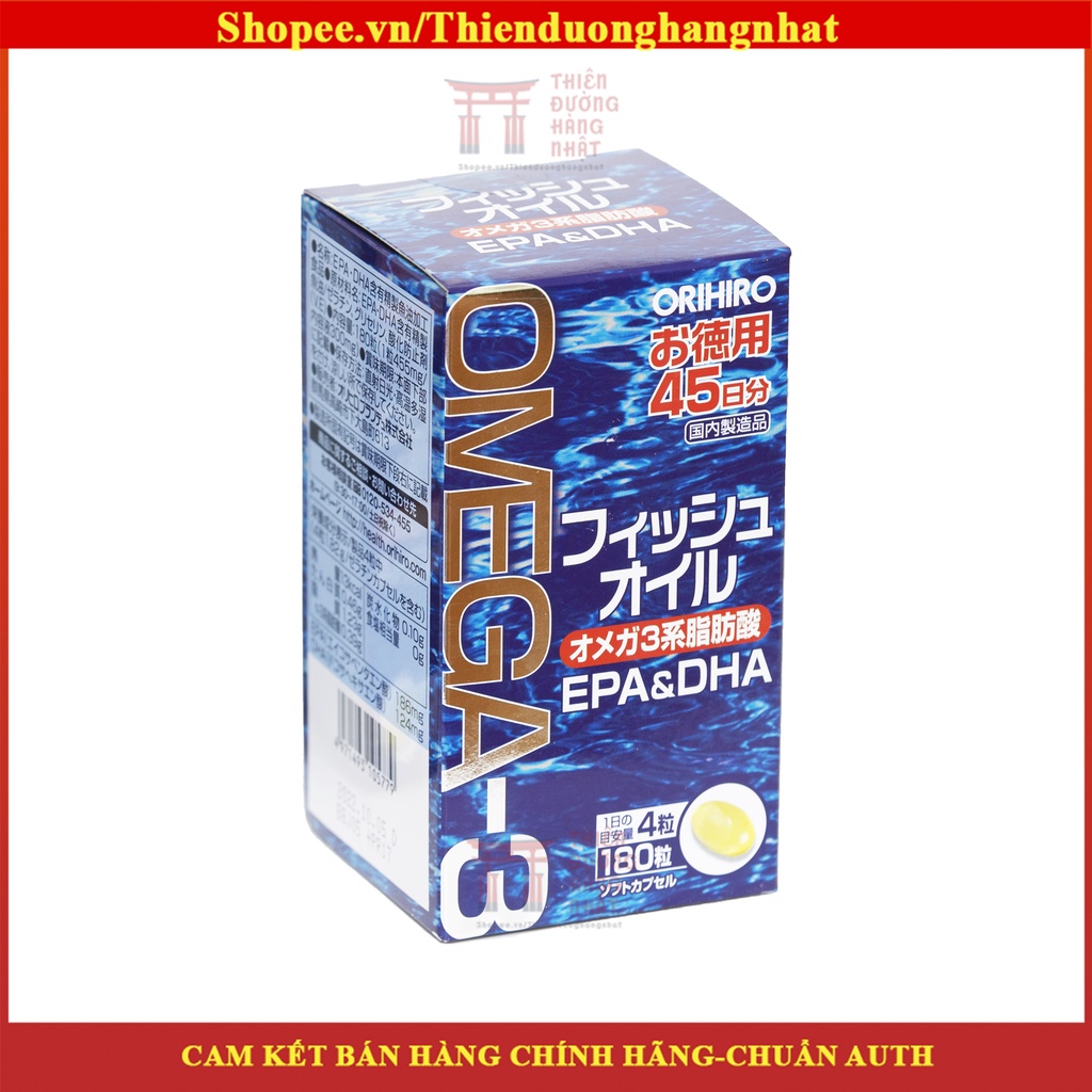 Dầu cá Omega 3 Orihiro Fish Oil tốt cho mắt, tim mạch và não hộp 180 viên Nhật Bản