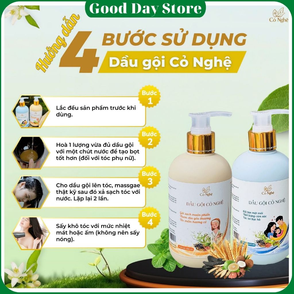 Dầu gội cỏ nghệ óng mượt gội và xả 2 trong 1,Dầu gội thảo mộc tự nhiên