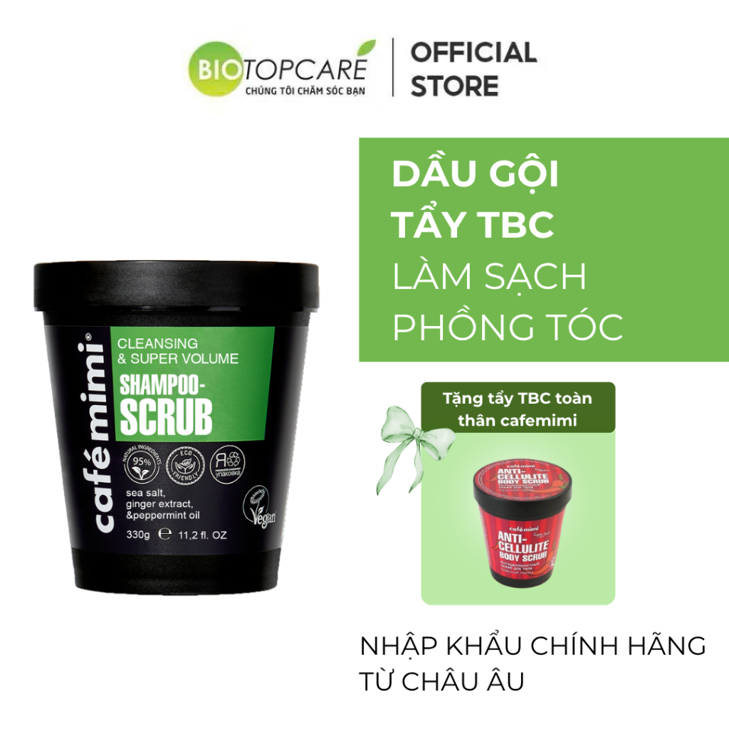Dầu gội tẩy tế bào chết da đầu CAFÉ MIMI làm sạch và làm phồng tóc 330g - BioTopcare Official