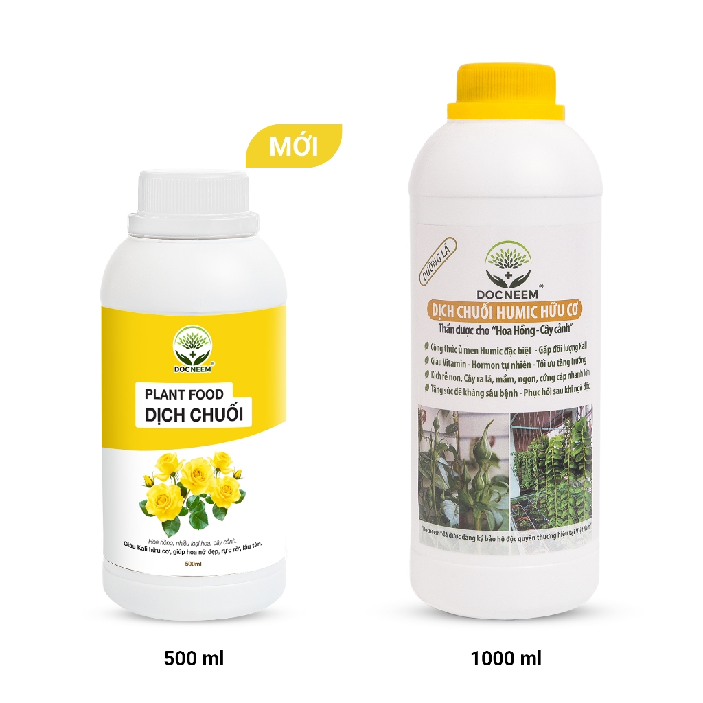 Dịch chuối Humic hữu cơ DOCNEEM 500ml - 1L – Phân bón lá cho hoa hồng, lan, cây cảnh, rau sạch