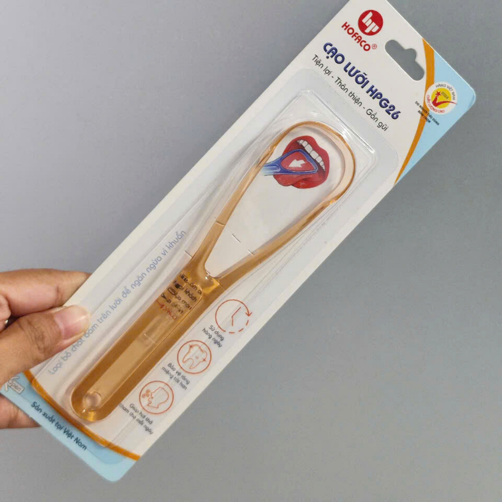 Dụng cụ cạo lưỡi nhựa cán cầm Hofaco, cây nạo lưỡi nhựa dạng tròn,giúp vệ sinh răng miệng, hơi thở thơm tho.
