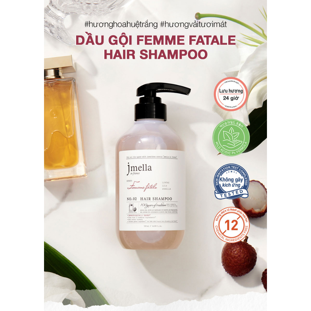 Dầu Gội Jmella In France Tóc Chắc Khỏe Hương No.2 Femme Fatale Hair Shampoo 500ml