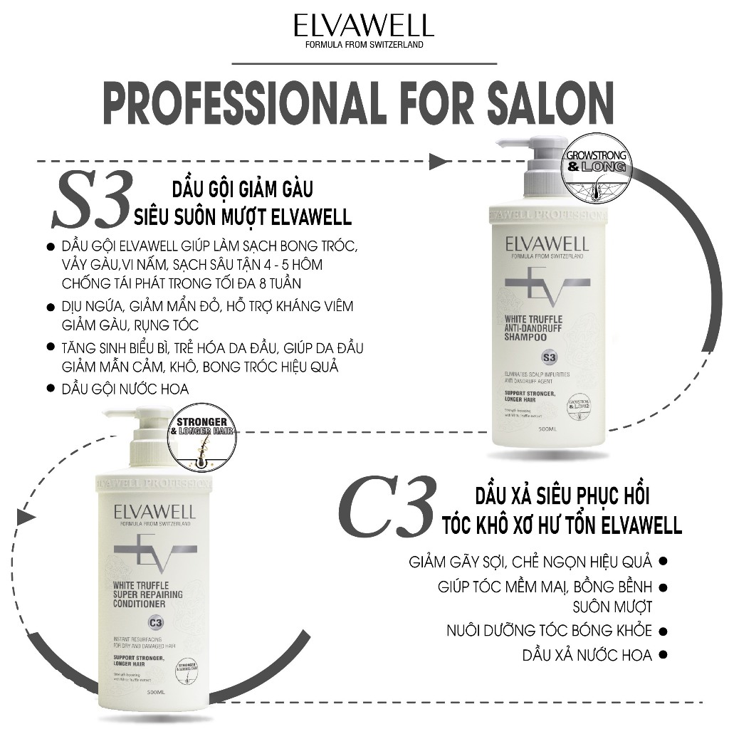 COMBO Gội + Xả Elvawell Giảm Gàu Siêu Suôn Mượt - Chuyên Sâu Sạch Gàu & Dịu Ngứa Da Đầu