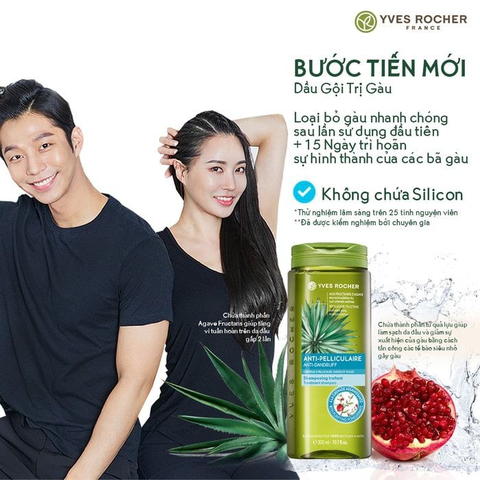 Yves Rocher _Dầu Gội tóc Gàu Anti-Dandruff Treatment Shampoo Sulfate Free Bottle 300Ml