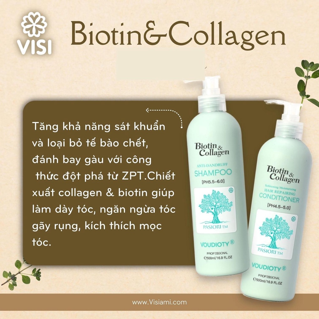 Dầu Gội, Xả Biotin Collagen Voudiot Xanh Dương giúp ngăn gàu, giảm rụng, kích mọc tóc 500ml-1000ml