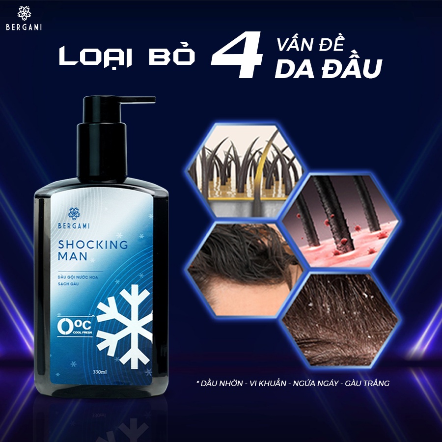 Dầu Gội Hương Nước Hoa Nam Bergami Shocking Man, Lưu Hương 6H 330ml/chai