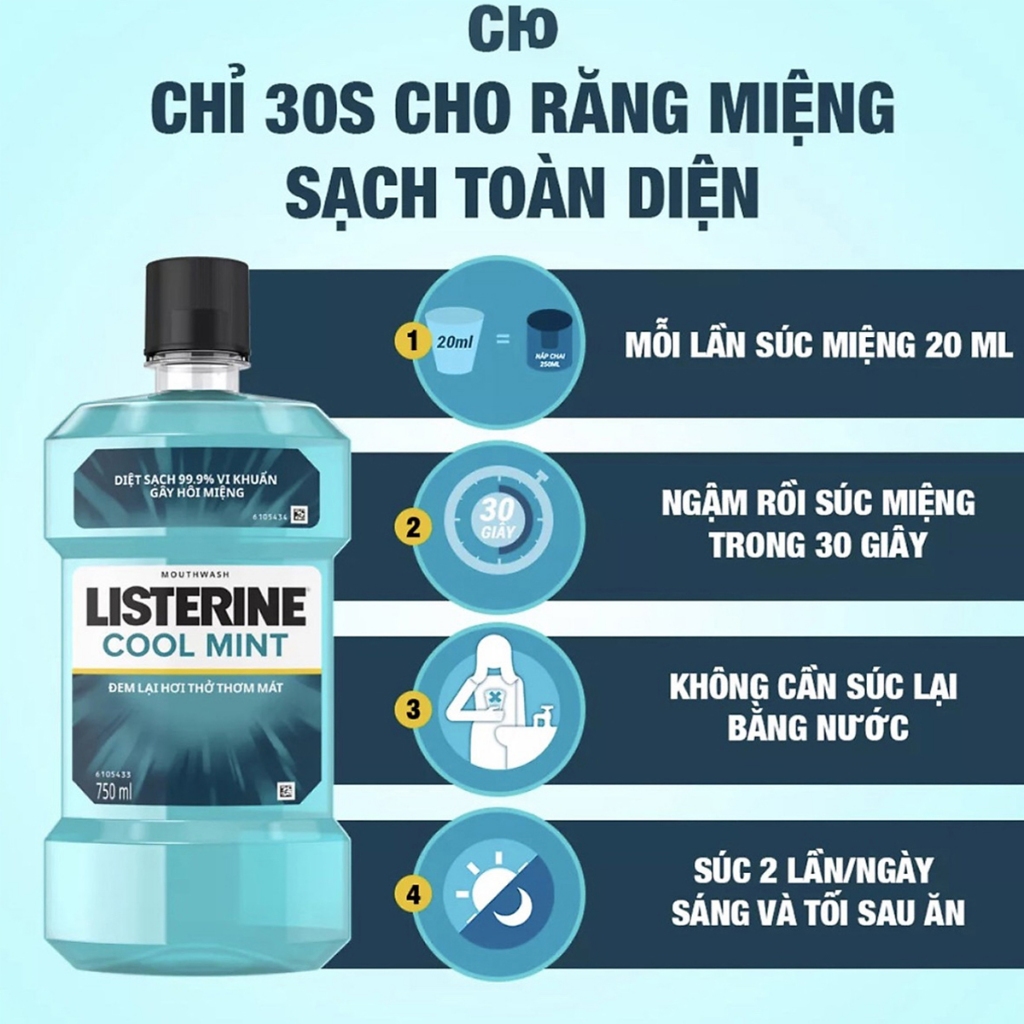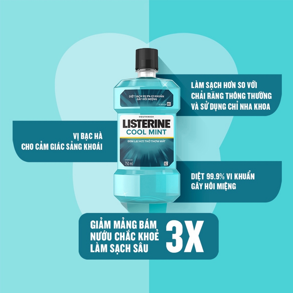 Nước Súc Miệng Listerine Sạch Sâu Thơm Mát, Ngăn Vi Khuẩn - Listerine Coolmint Mouthwash 250ml/750ml