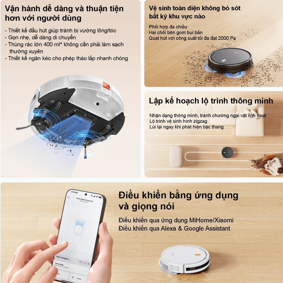Robot Hút Bụi Lau Sàn Xiaomi Vacuum E5 - Phiên Bản Quốc Tế - Chính Hãng Bảo Hành 12 Tháng