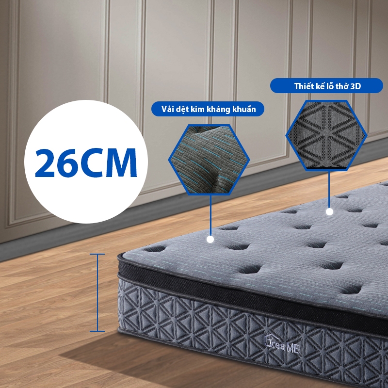 KADE Nệm Hybrid Latex 100% Đệm Foam Cao Su Non Thiên Nhiên Và Lò Xo Túi KADE Home Goods Mattress