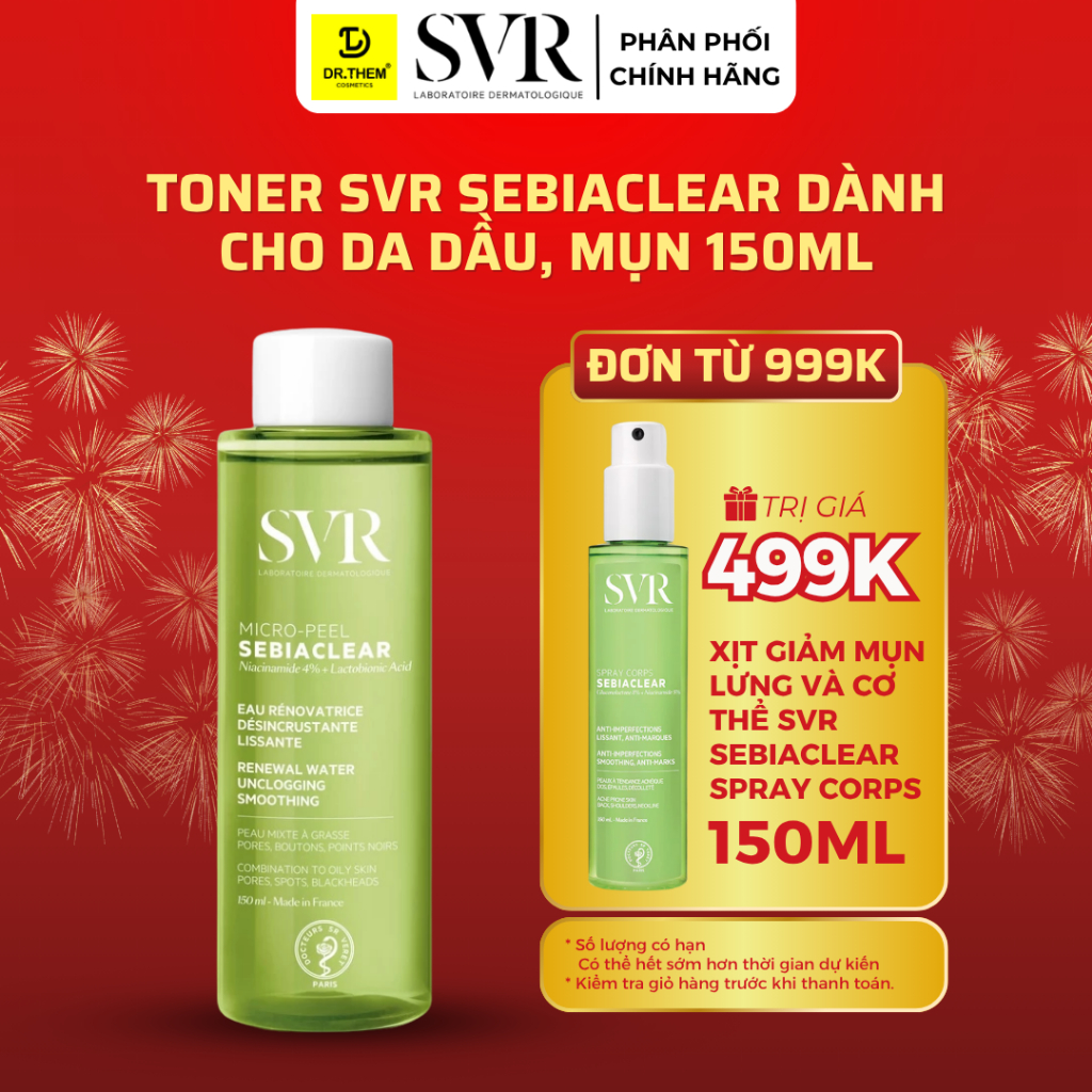 SVR Sebiaclear Micro Peel Toner 150ml Nước Cân Bằng Cho Da Dầu Mụn- Dr Thêm
