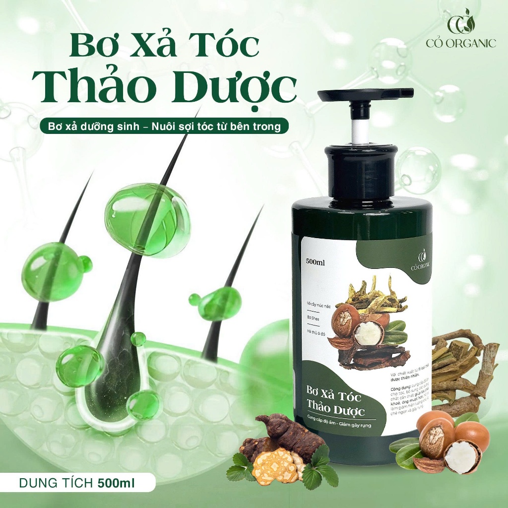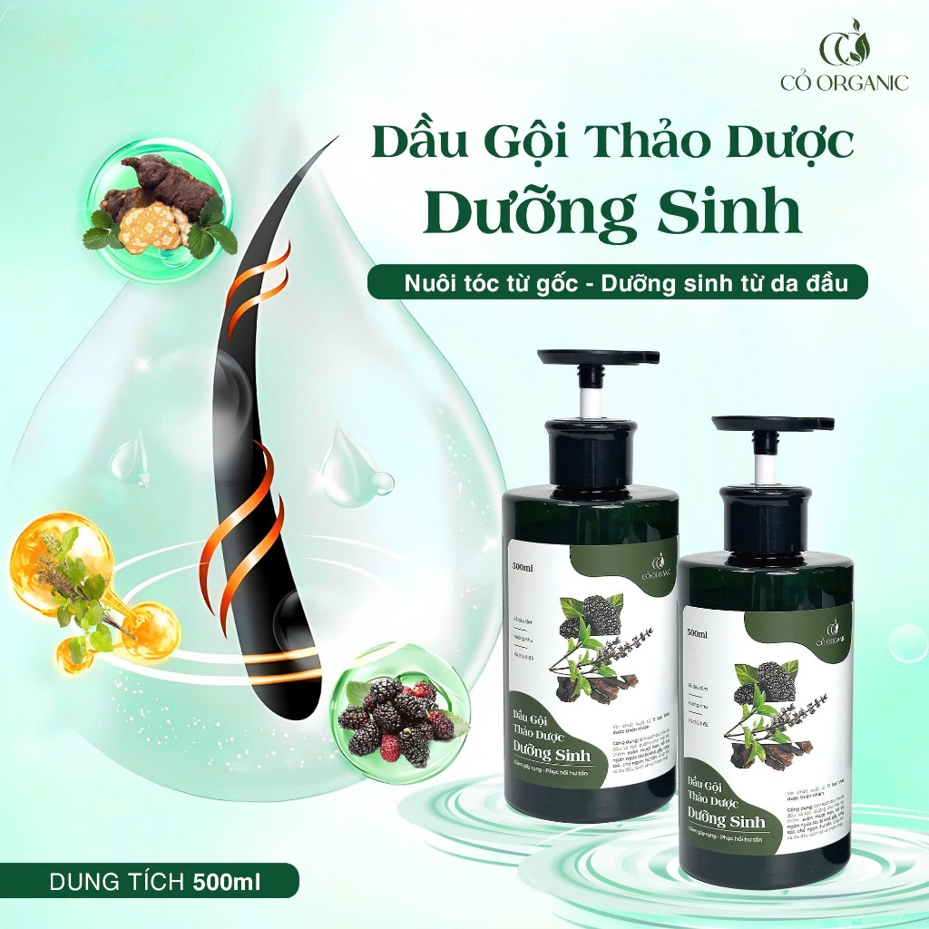 Cặp Gội Xả Thảo Dược Dưỡng Sinh Cỏ Organic 500ml – Tăng Tuần Hoàn Máu & Ngăn Rụng Tóc-Tặng Sữa Tắm 35ml