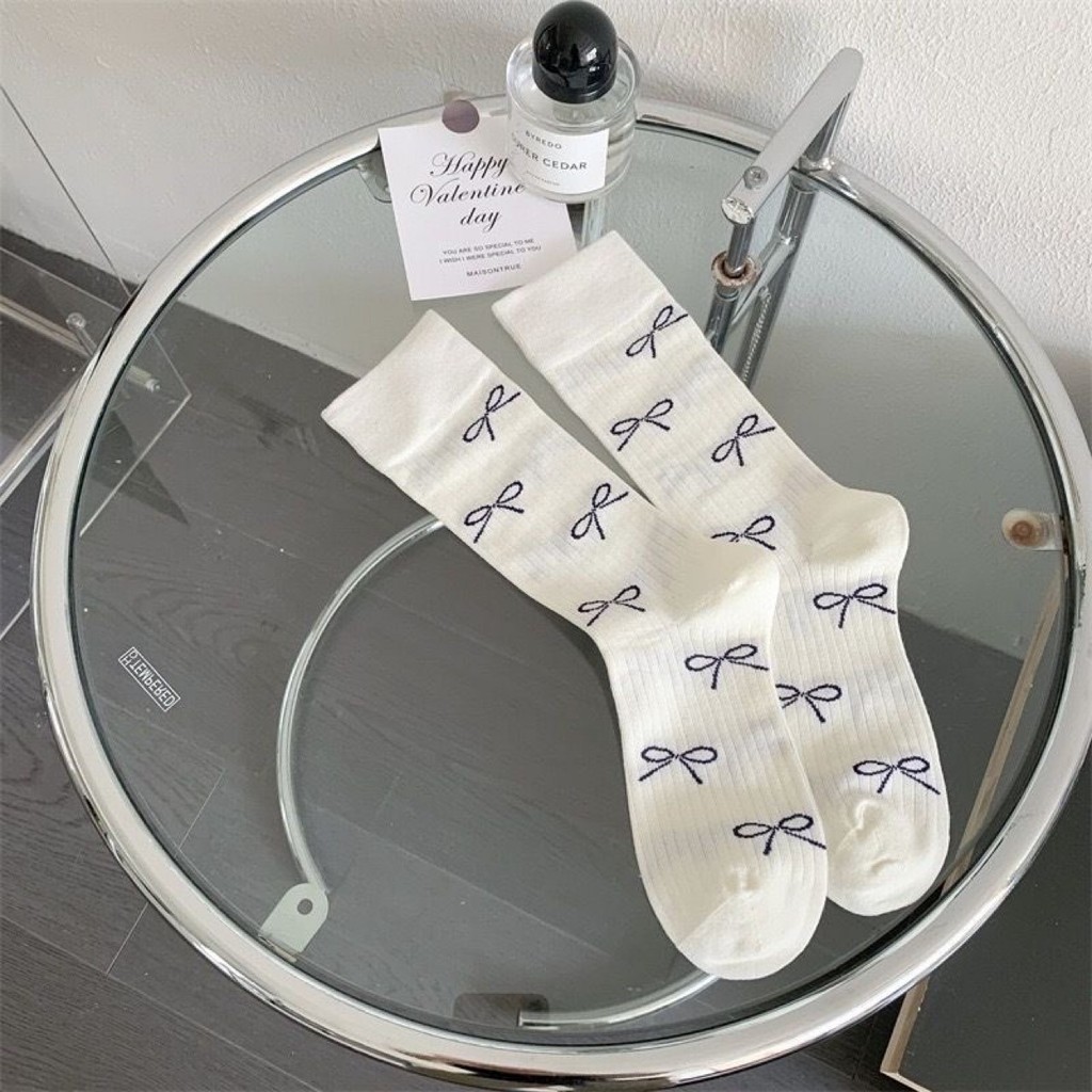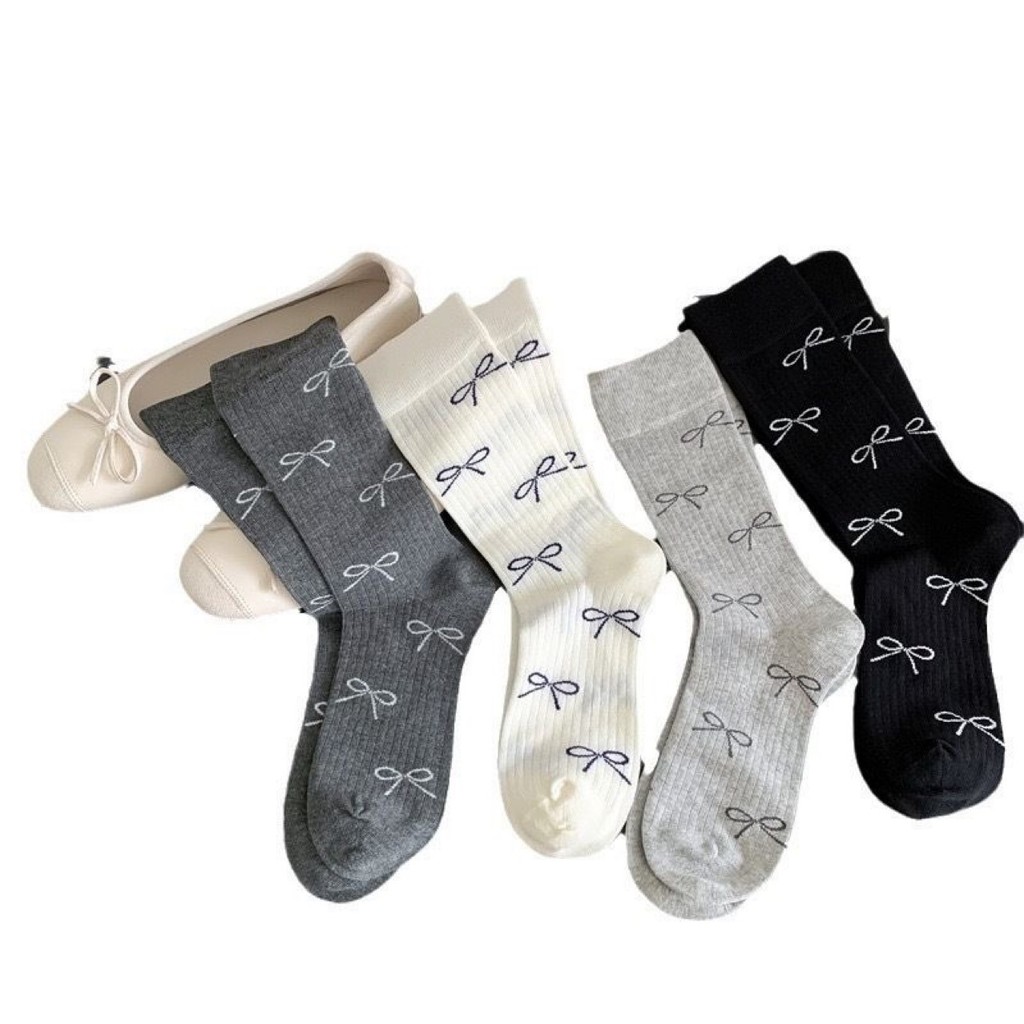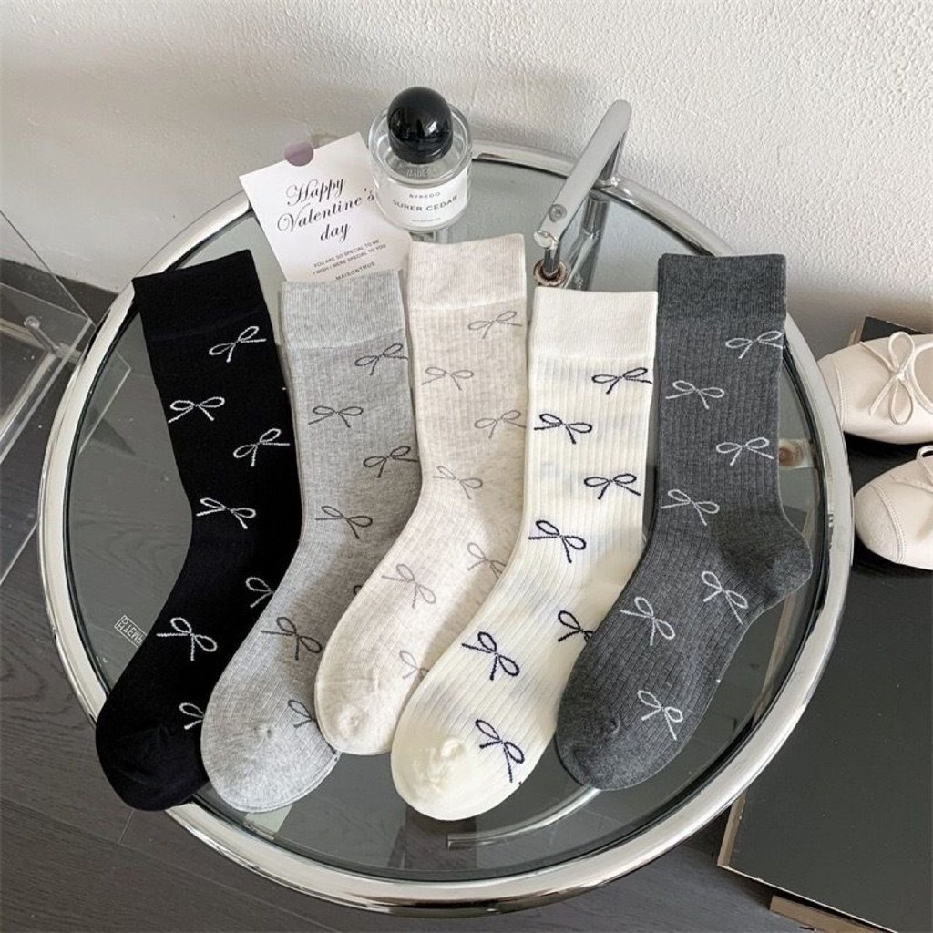 In nơ tinh tế ~ Tất cọc nữ Nhật Bản Phong cách Preppy Xuân Thu Phong cách, Thích hợp cho giày da nhỏ JK Quần áo Trang phục phù hợp