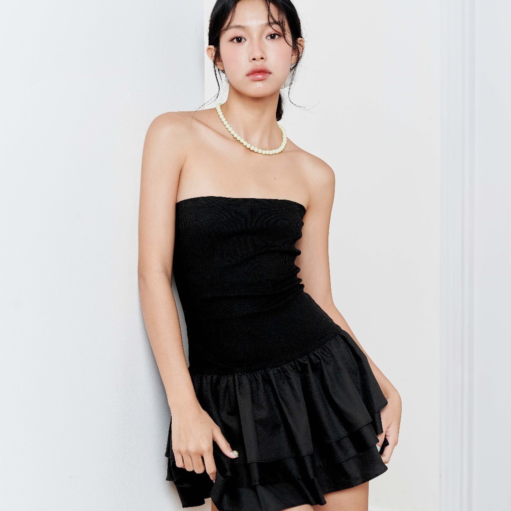 DOTTIE - Đầm ống phối bèo - Đen - D0627