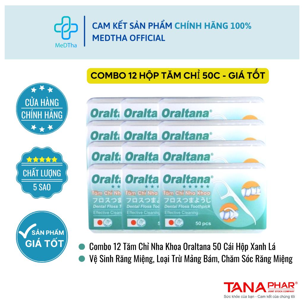 Combo 6 Hộp Tăm Chỉ Nha Khoa Oraltana Nội Địa - Vệ Sinh, Chăm Sóc Răng Miệng, Tăm Xỉa Răng (Hộp 50C)