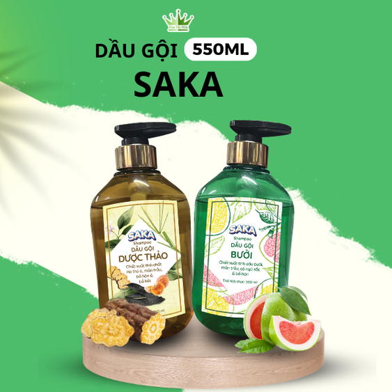Dầu Gội SAKA 550ml – Thảo Dược Tự Nhiên, Ngăn Gãy Rụng, Giảm Gàu, Suôn Mượt Tóc