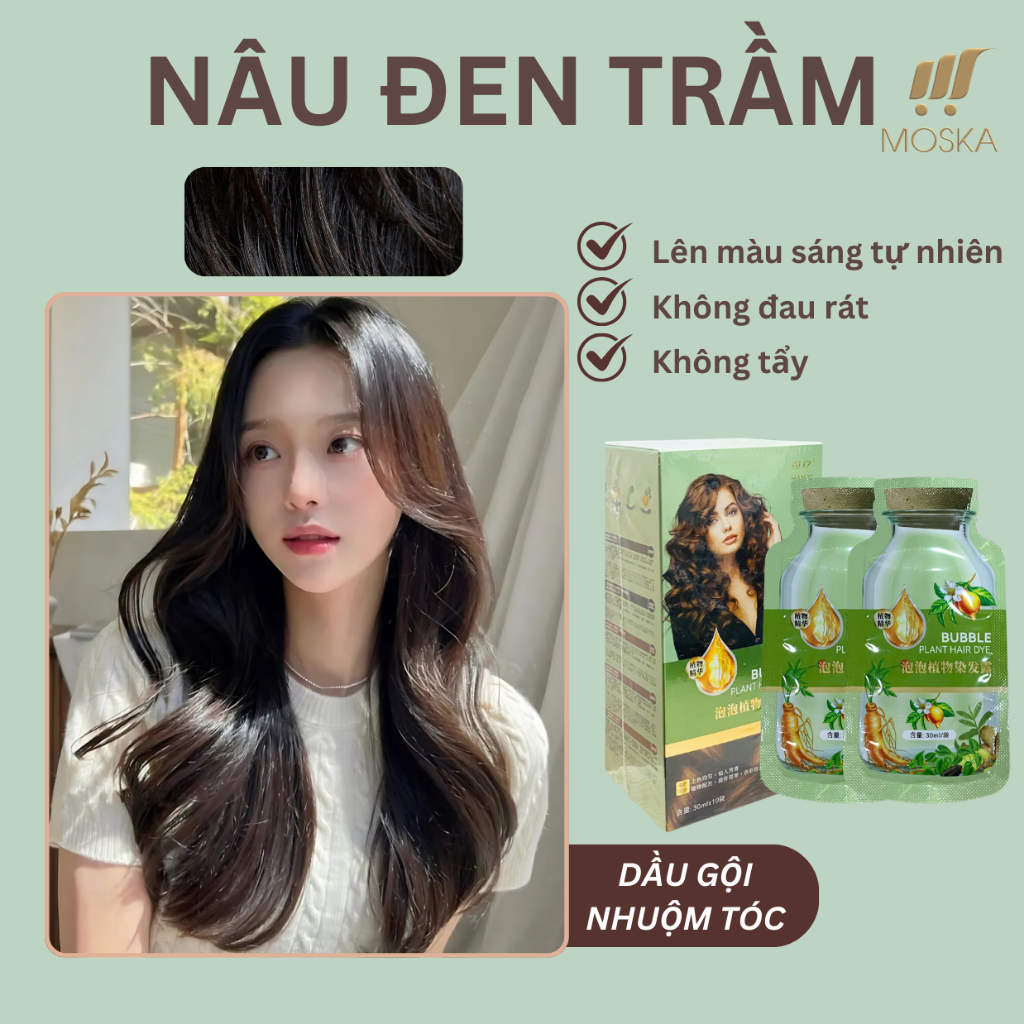 Dầu Gội Phủ Bạc Nhuộm Tóc BUBBLE Thảo Dược Nhân Sâm, Tóc Mượt, Khoẻ, Thơm K0 Rát Da Đầu| Moska Shop