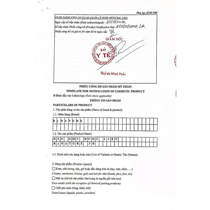 Dầu gội dược liệu ByNature 3D dưỡng tóc mềm mượt, chắc khỏe, sạch gàu 600ml