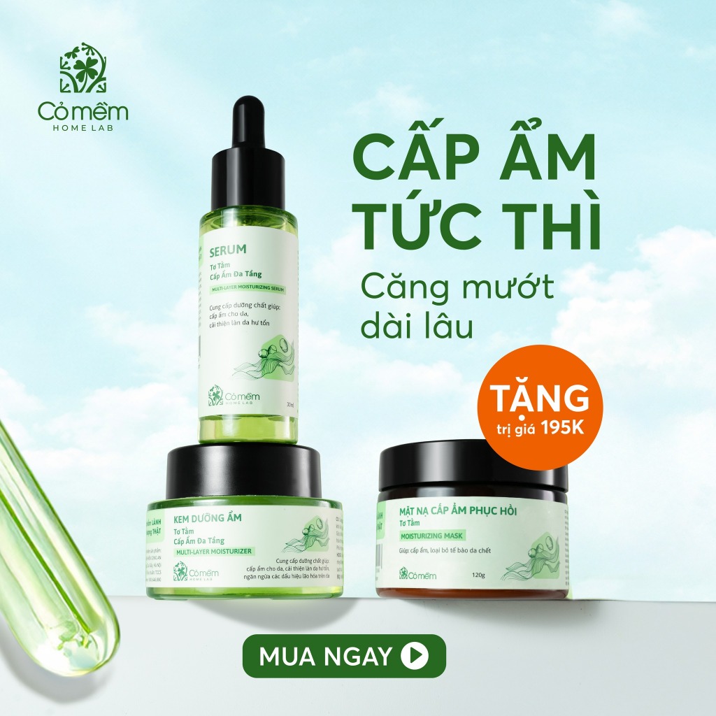 Combo Dưỡng Da Mặt Serum Kem Dưỡng Ẩm Đa Tầng Tơ Tằm Với Hoạt Chất HA B5 Creamide Betaglucan Cỏ Mềm