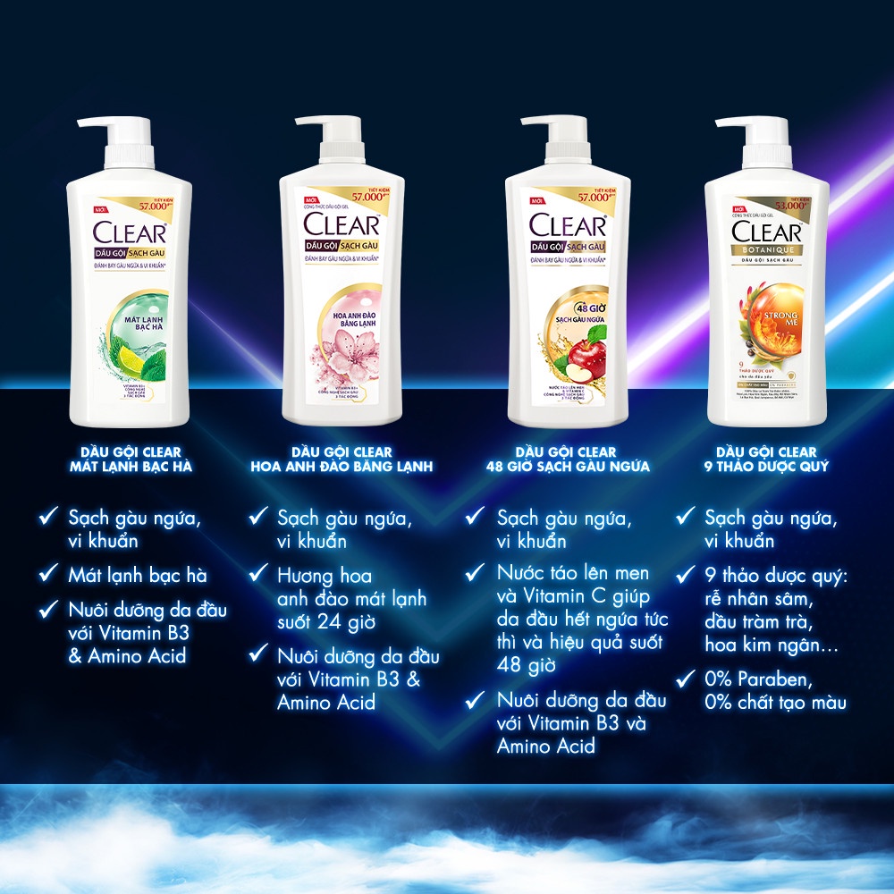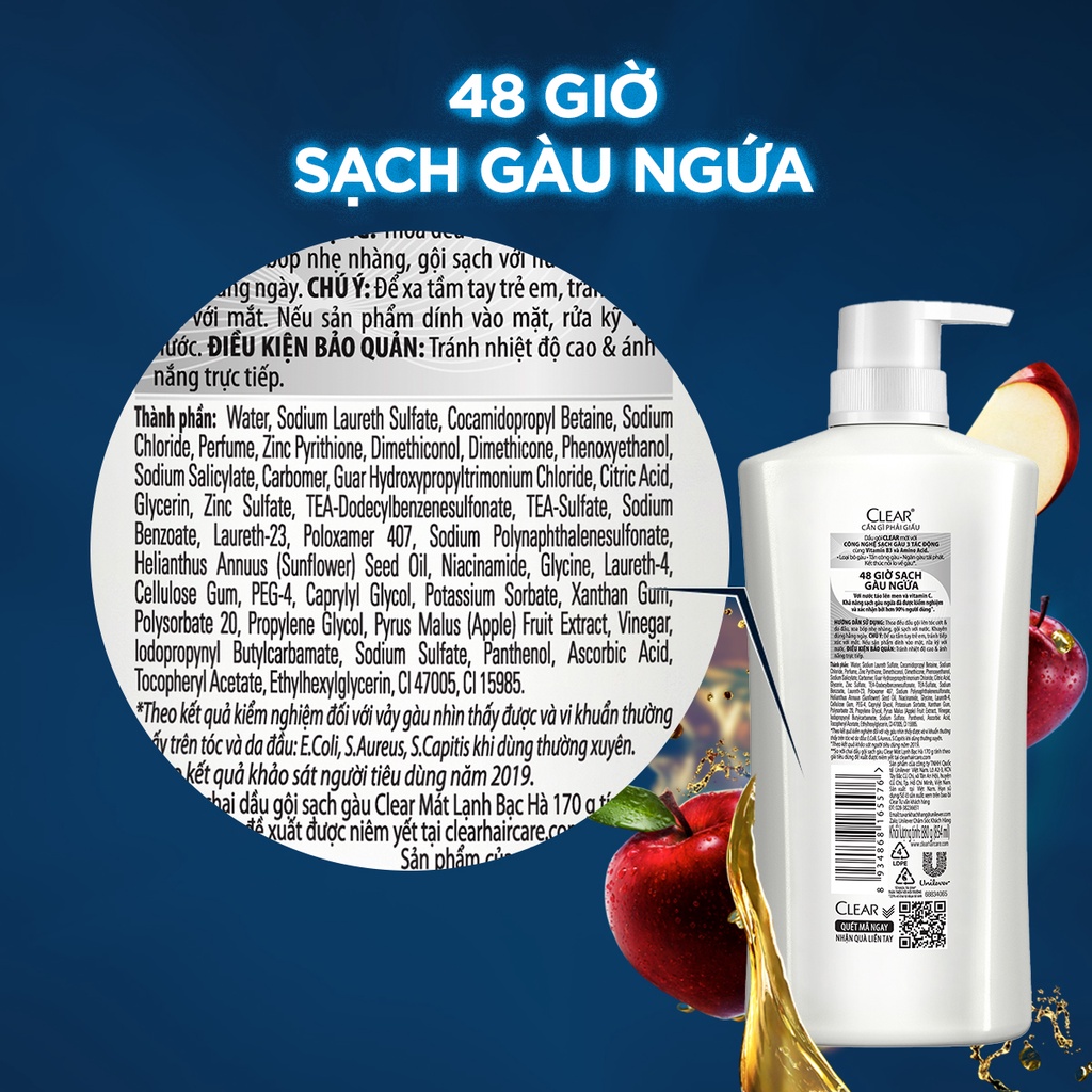 Dầu gội đầu Clear sạch gàu ngứa và vi khuẩn suốt 48 Giờ 880g