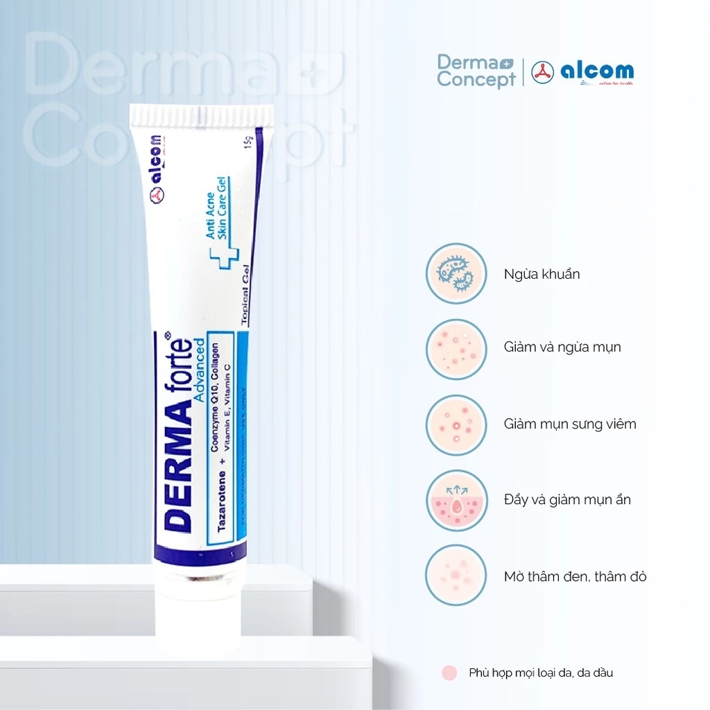 Gel Giảm Mụn Derma Forte advanced Chính Hãng kem Ngừa Thâm chấm mụn ẩn viêm bôi Mờ Sẹo Tuýp 15g