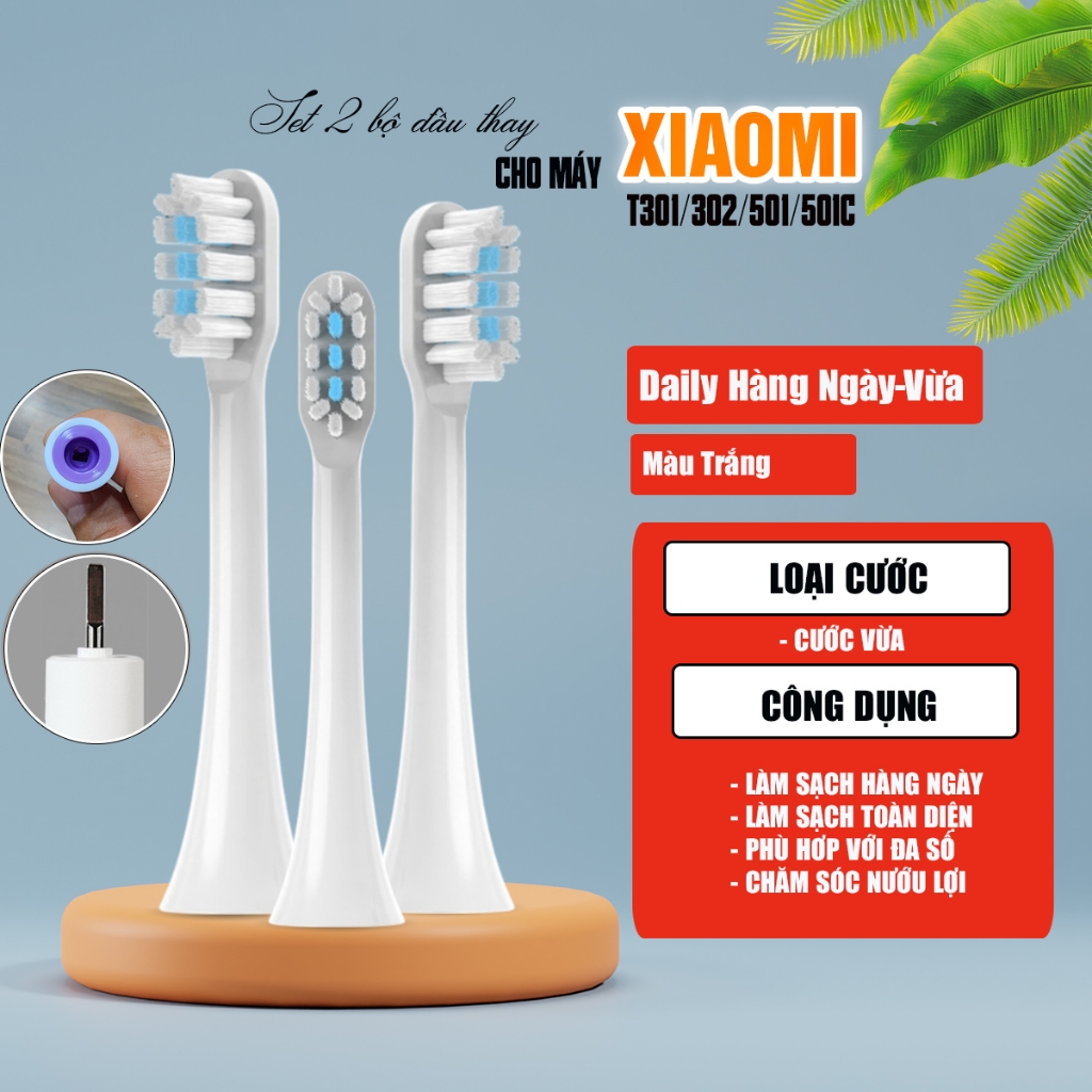 Cho máy Xiaomi T301(mes605)/T302(mes608)/T501(mes607) bộ 2 đầu bàn chải đánh răng điện Minh House