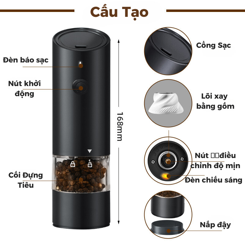 Máy xay hạt tiêu tự động cầm tay, sạc điện