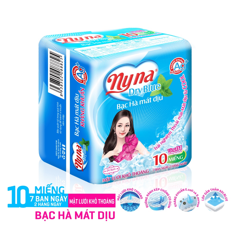 Băng Vệ Sinh Nyna Dryblue Lốc 8 Gói Màu Xanh - Bvs Có Cánh Ban Ngày Siêu Thấm Khô Thoáng .., Hương Bạc Hà Mát Dịu