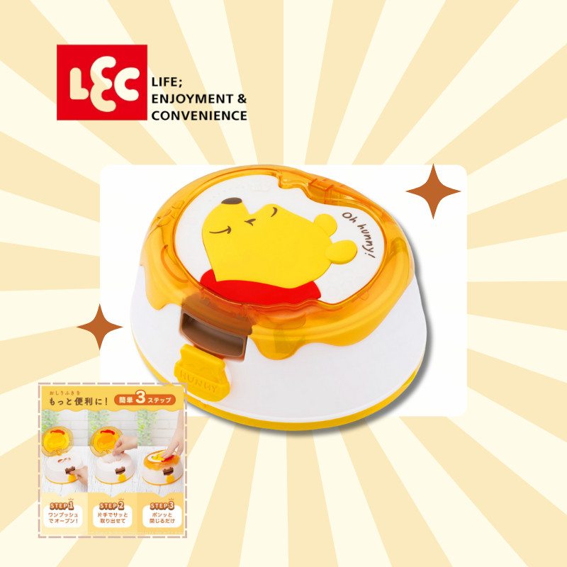 "LEC Character Wet Wipe Case with Baby Wipes - One-Push Open and Child Lock - Made in Japan"