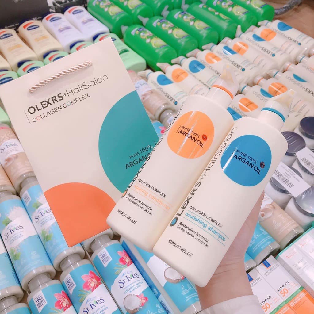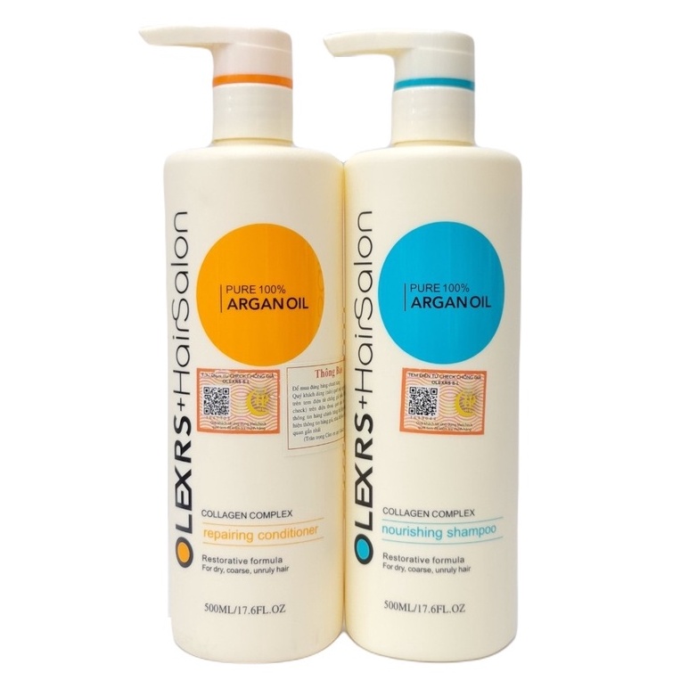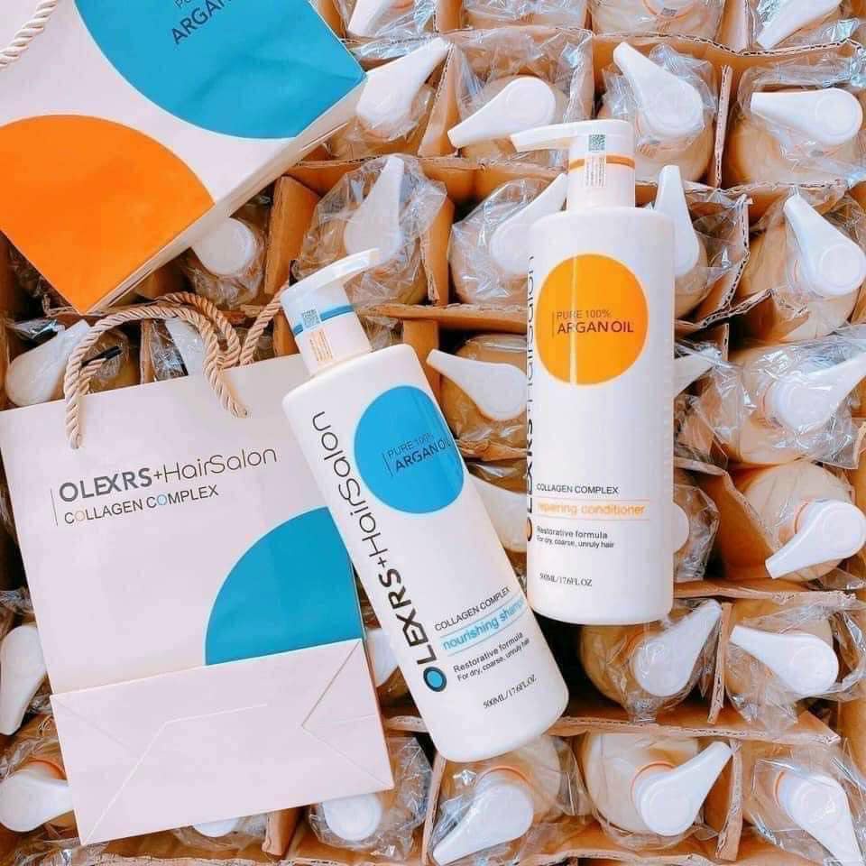 Olexrs HairSalon Argan Oil Collagen - Bộ Gội Xả Phục Hồi, Cấp Ẩm Tóc Khô Hư Tổn
