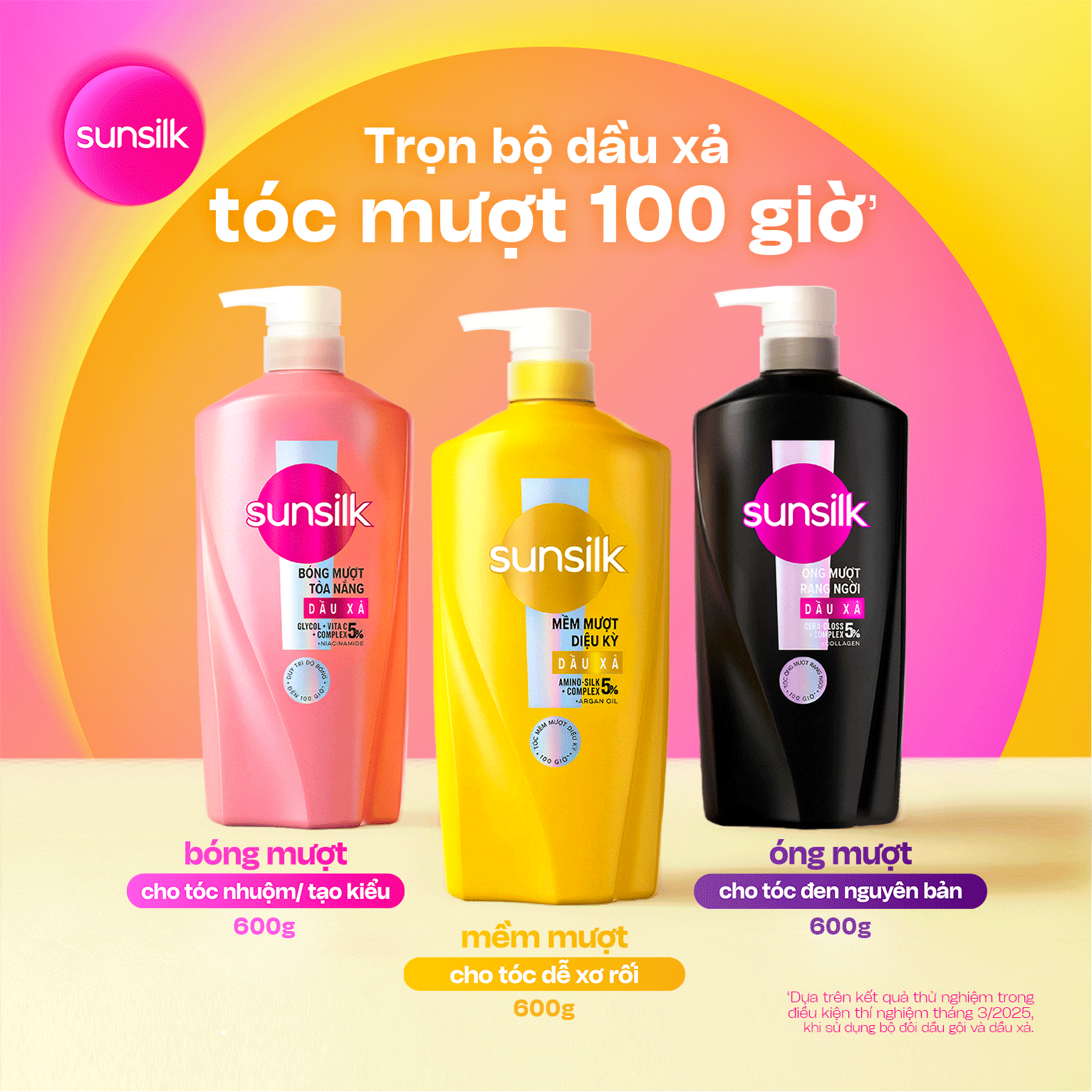Kem xả Sunsilk cho tóc Mượt 100h (Bóng mướt- Luminous UV / Đen óng - Glossy Black / Mềm mượt - Silky Smooth) 600g