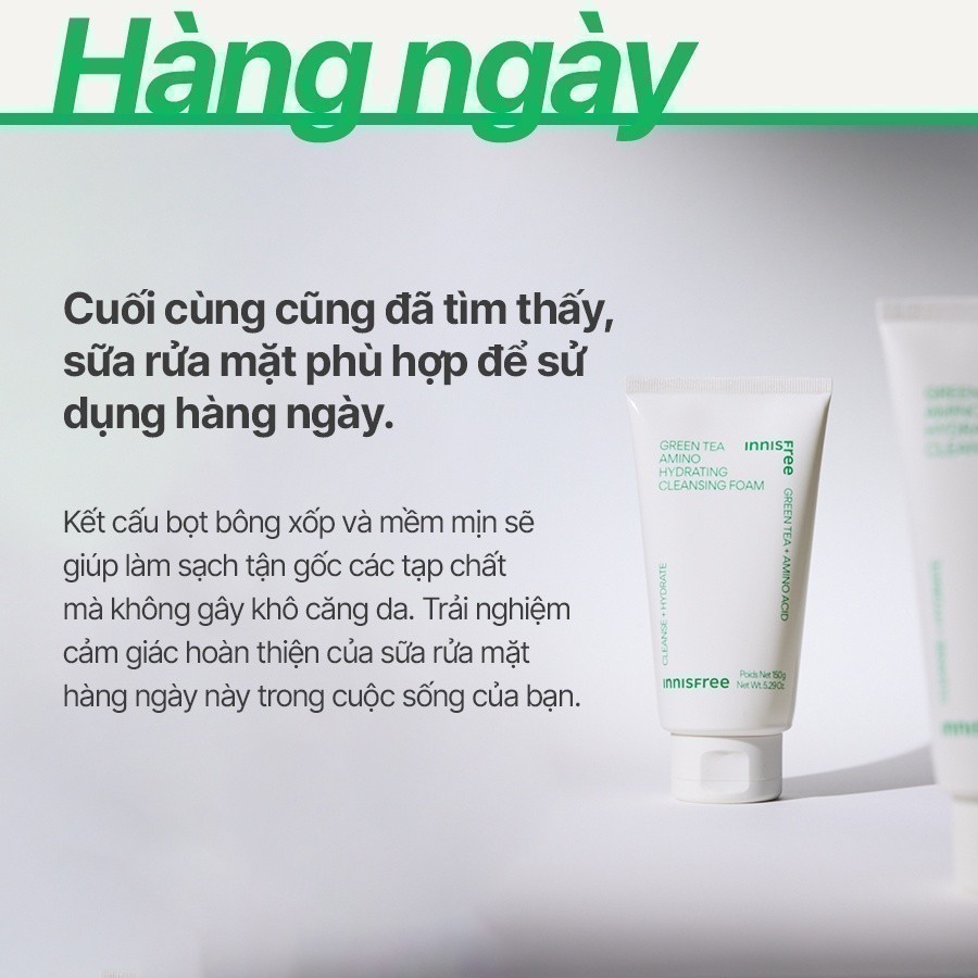 Innisfree Sữa Rửa Mặt Sữa rửa mặt trà xanh sạch sâu ẩm mịn INNISFREE Green Tea Cleansing Foam 150g