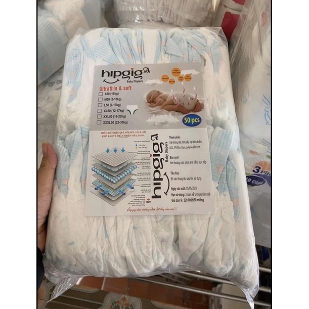 (TPHCM) combo 50 miếng tả bỉm trẻ em , bỉm dán size S M L XL 2XL siêu thấm hút cho bé