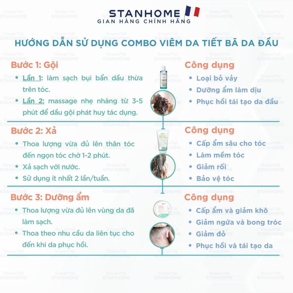 Combo viêm da đầu tiết bã Stanhome Balance Shampoo-Balm Repair-Gentle shampoo - Gentle Conditioner