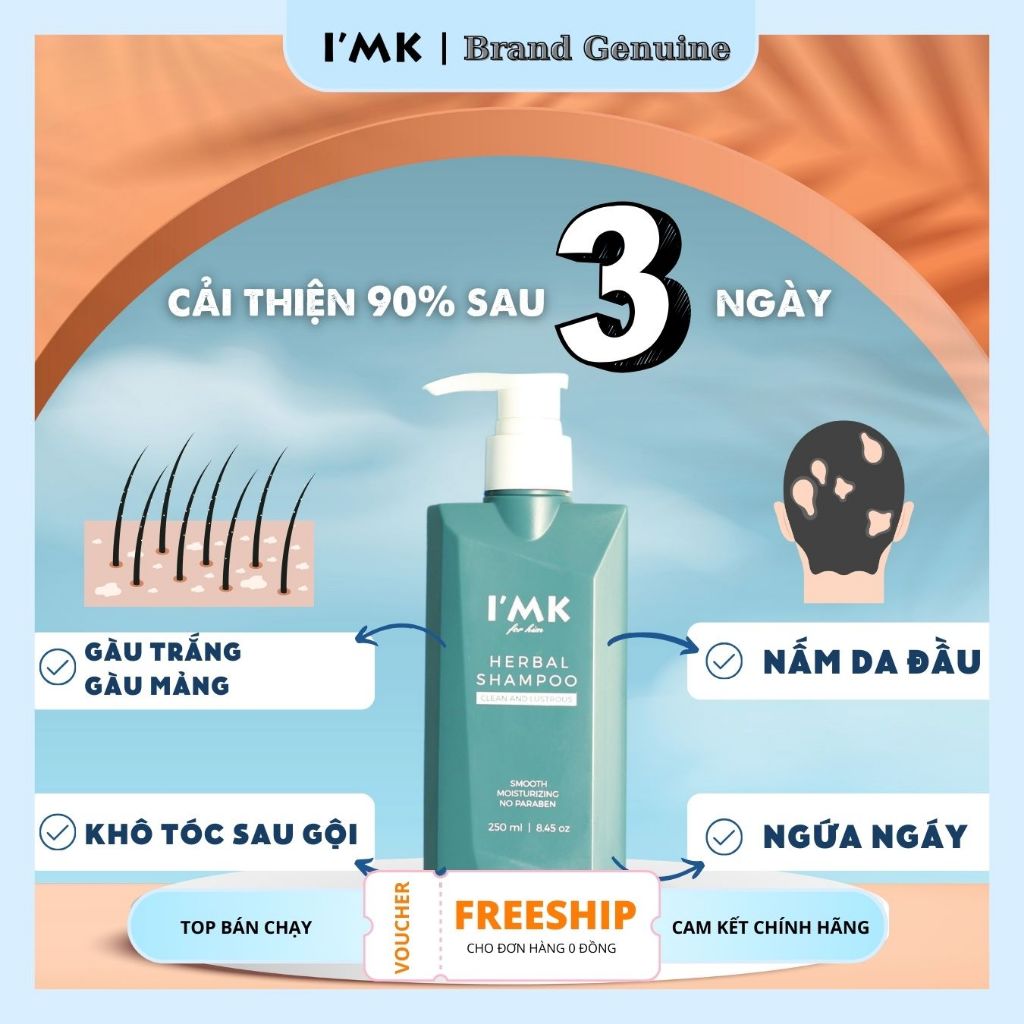 Dầu Gội Nam I'MK Herbal Shampoo Cải Tiến Sạch Gàu, Nấm - Kết Hợp Thảo Dược & Thành Phần Giảm Gàu Ngứa