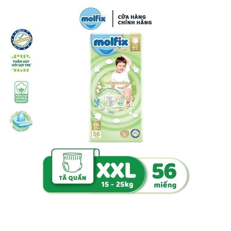 [ Tã/ Bỉm QUẦN ] Molfix size S/M/L/XL/XXL sợi tre thiên nhiên siêu thấm hút cho bé.