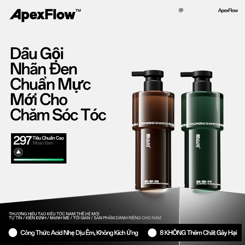 ApexFlow 即山川 Black Label Dầu Gội Phục Hồi Bồng Bềnh - Kiểm Soát Dầu, Ngăn Gãy Rụng, Thơm Lâu 380ml